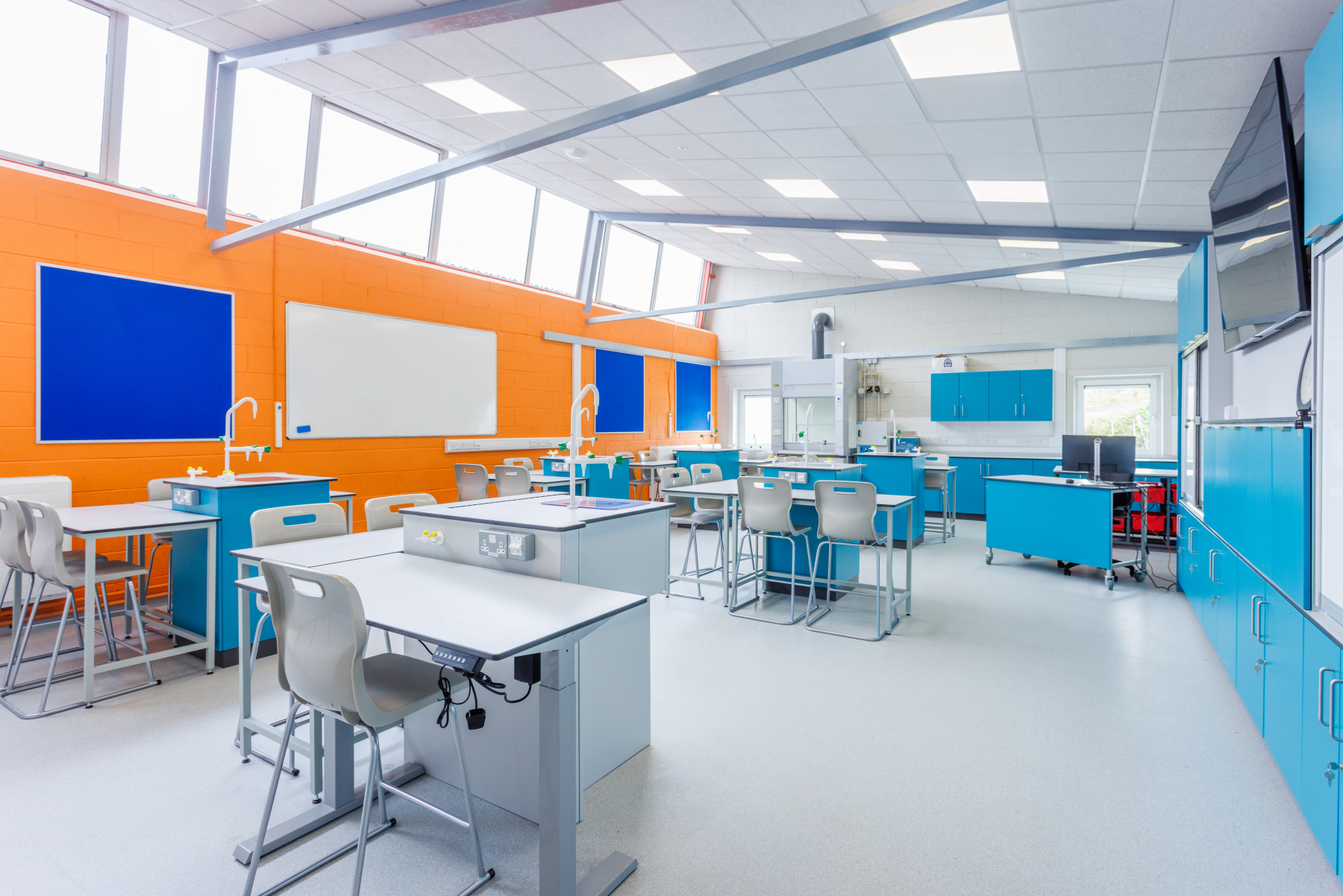 Tadhg Casey Architects were tasked to complete an application on behalf of the school in relation to two outdated science and preparation rooms. The result was a grant of funding for full refurbishment and renovation of these four rooms for which we provided a full architectural service. The end result is a modern, bright and engaging space.